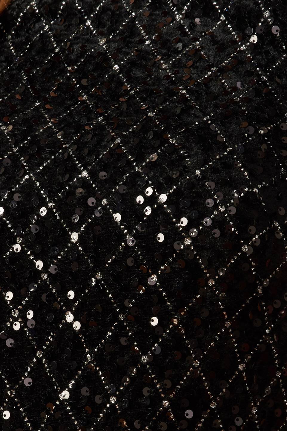 A sequin bodysuit featuring round neckline, long sleeve and mesh bottom with snap closure. Matching pant IP8688